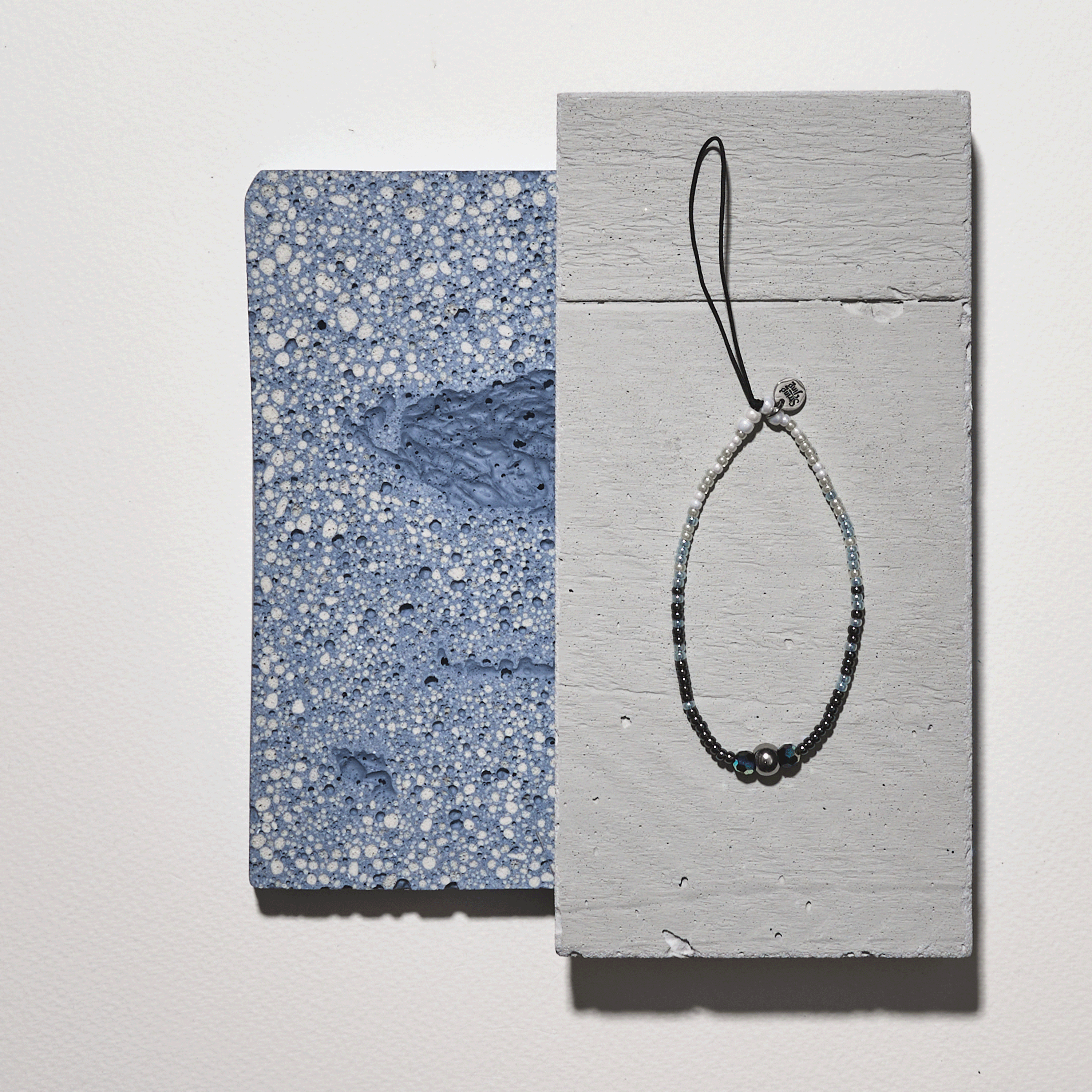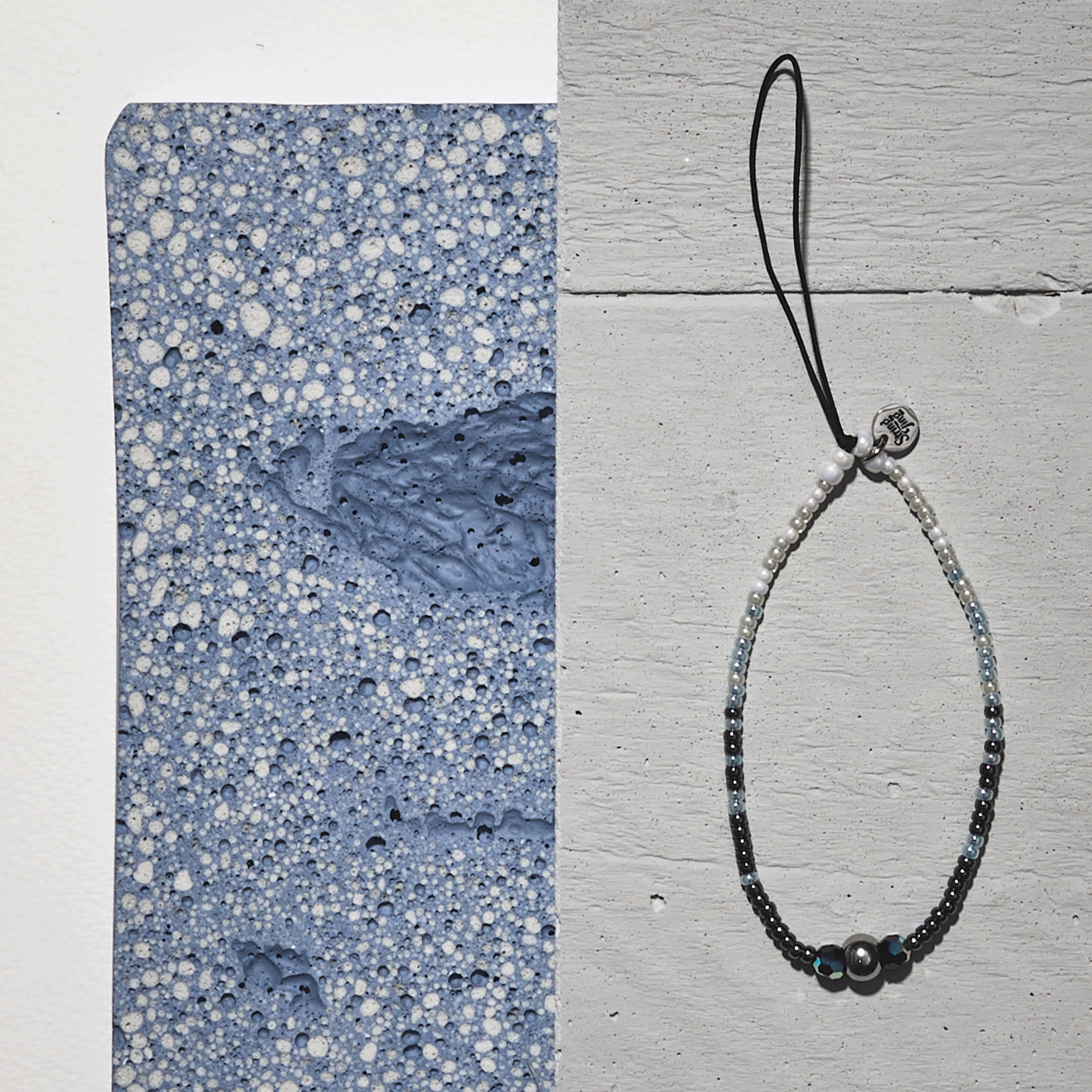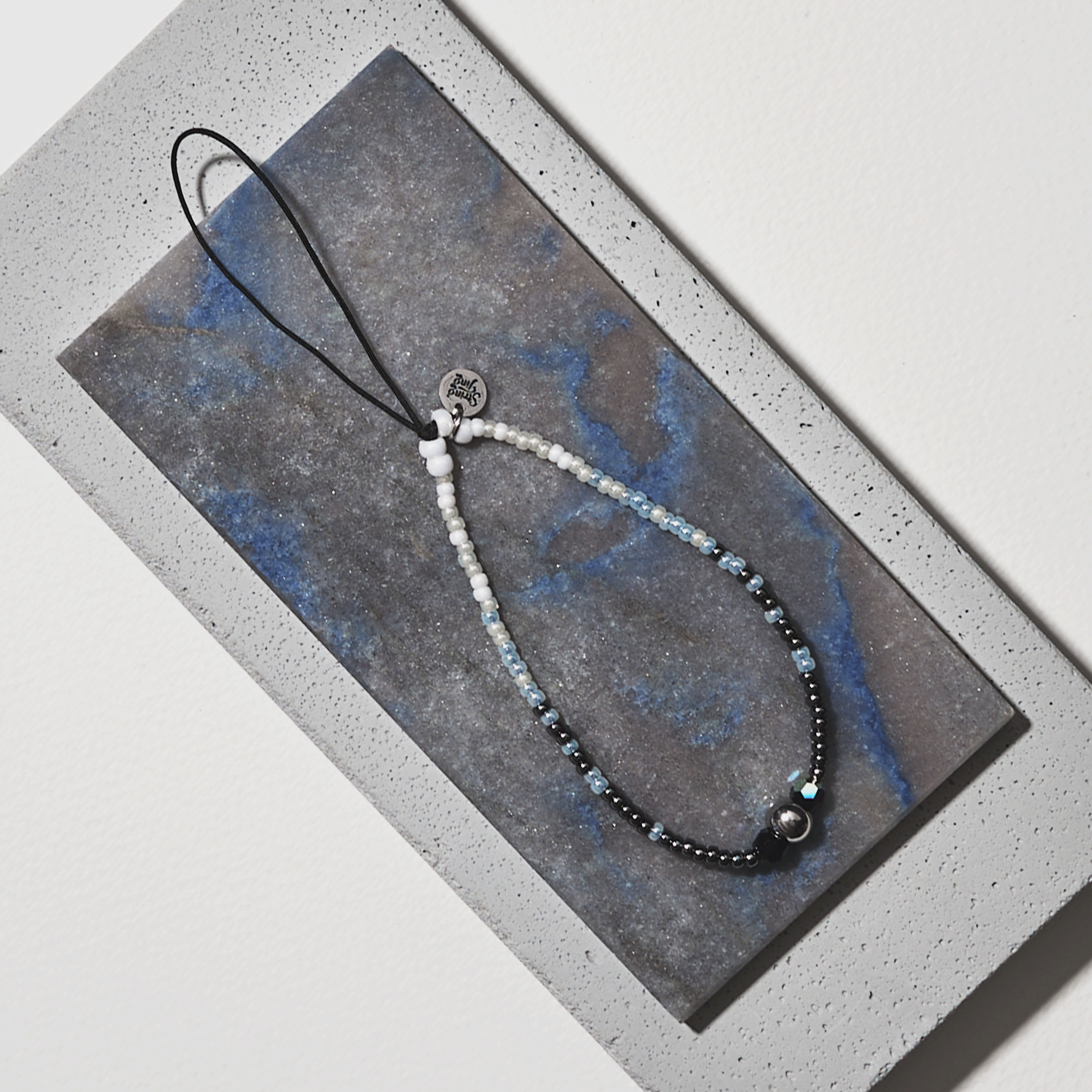 Your daily dose of iced coffee energy, miniaturised. Soft grey, baby blue, and pale yellow beads blend like cream swirling through cold brew, complete with two tiny crystals catching light like ice cubes in your cup.