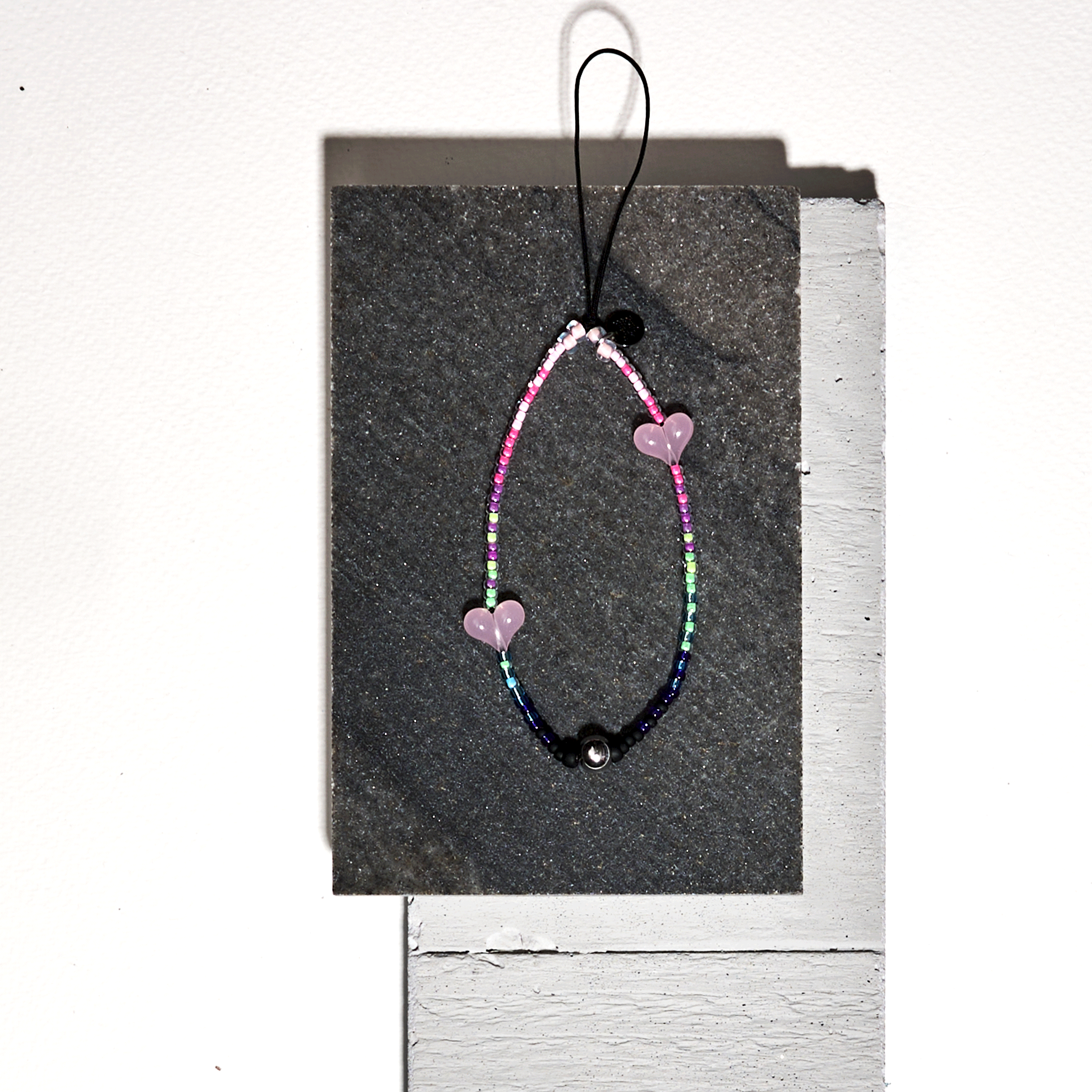 Where digital dreams meet fairy-tale sparkle. A gradient journey from soft bubble gum pink through electric neons to deep midnight blue, dotted with translucent pink heart charms that float like love in the metaverse and two small Jet AB crystals by Swarovski®.