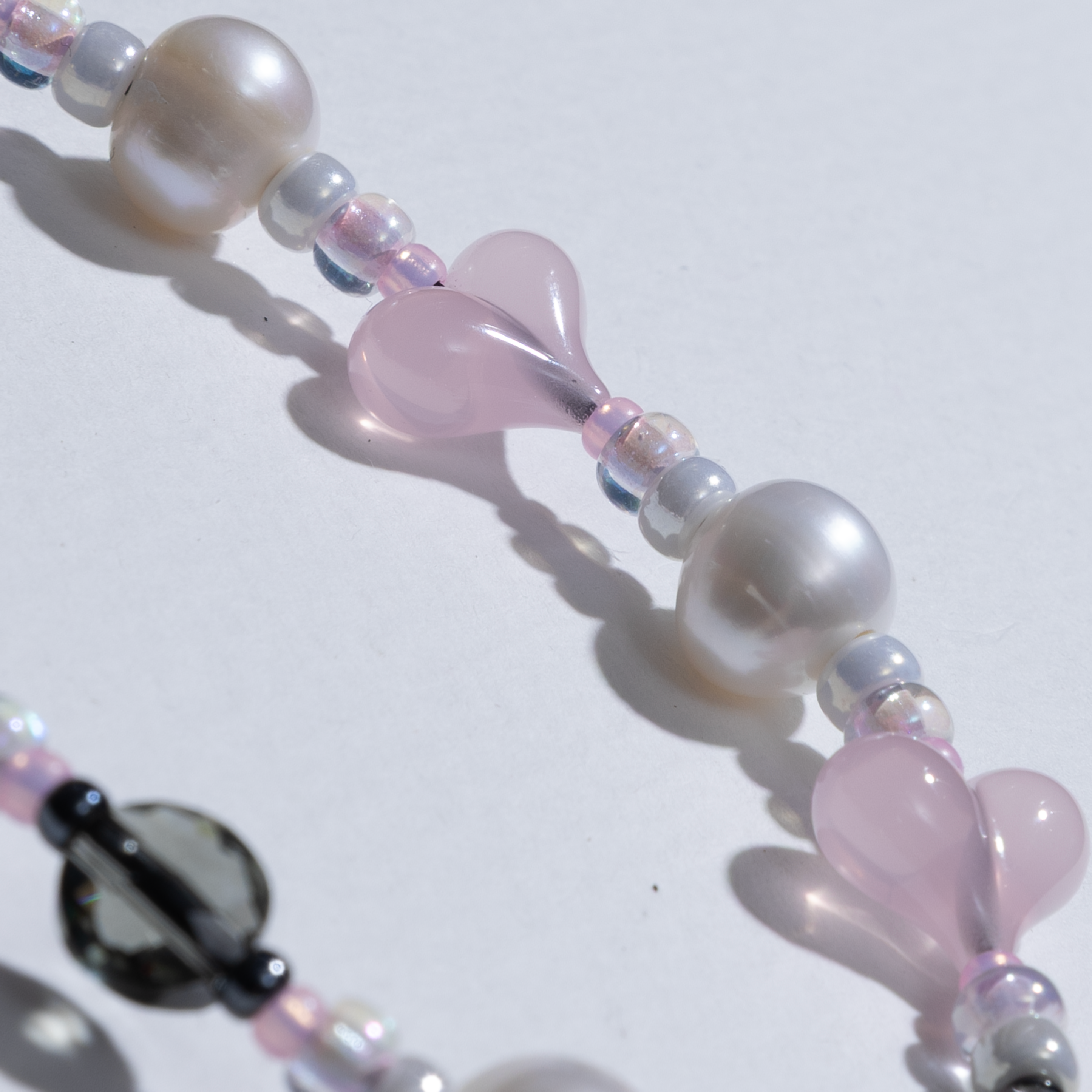 Dreamy, romantic, effortlessly elegant. This delicate beauty blurs the line between precious and playful — lustrous Freshwater Pearls mingle with soft pink 3D heart beads and smoky Crystals by Swarovski® for a look that's pure poetry.