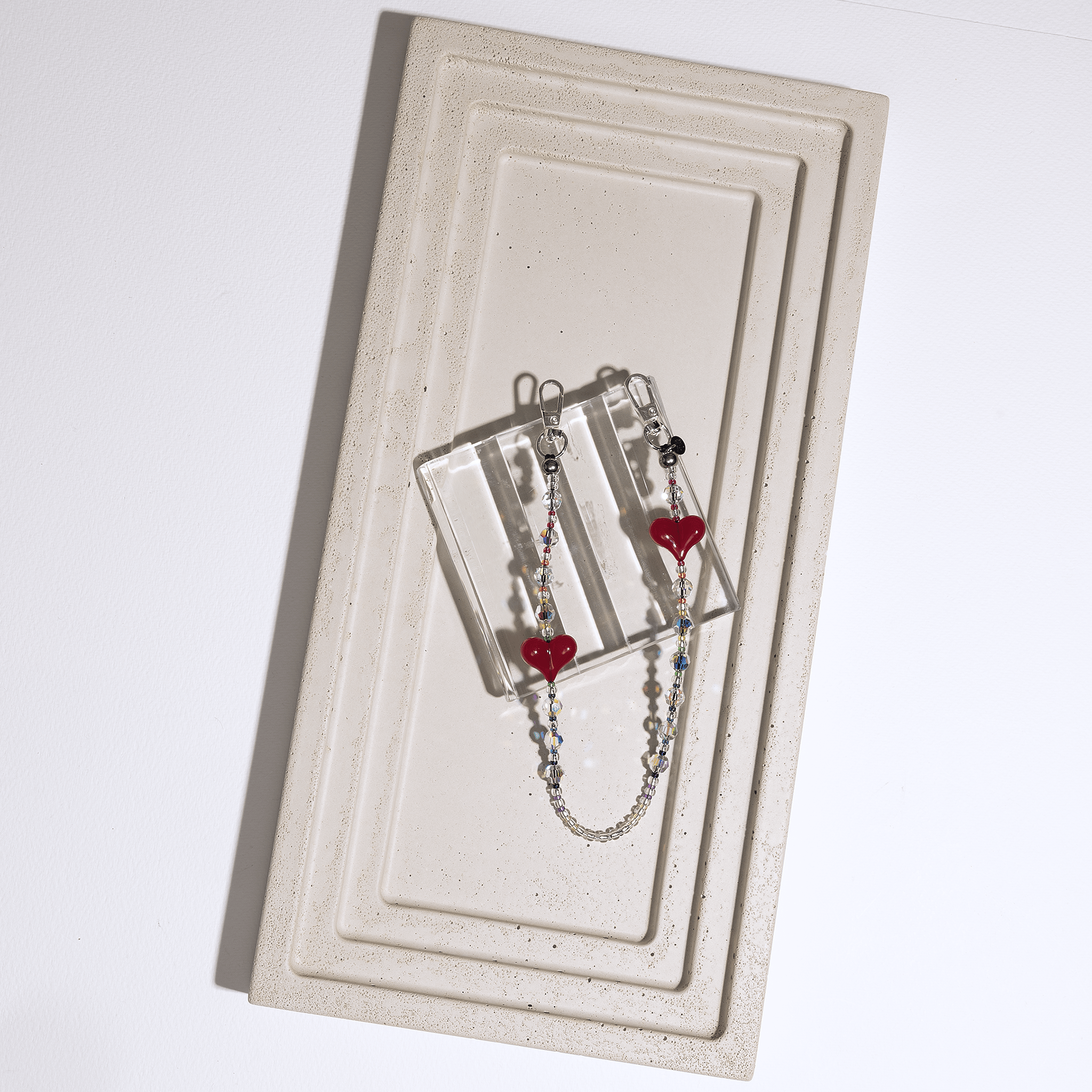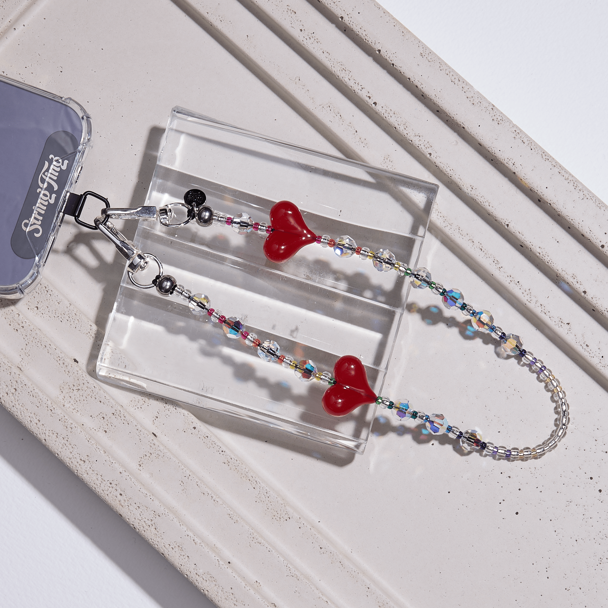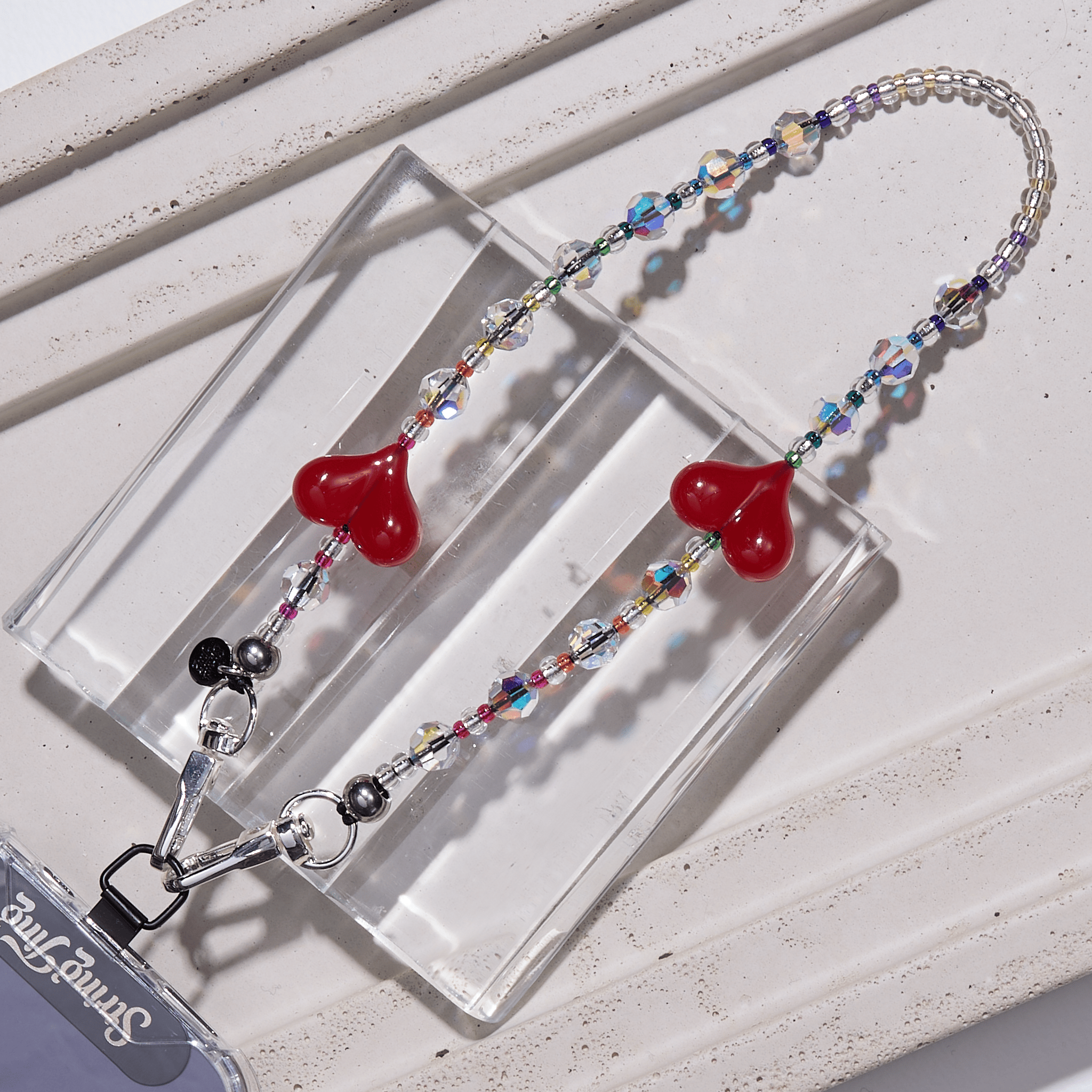 Clip to your phone case corners or secure with our Phone Strap Card for bottom attachment. Can also be styled as a trouser chain, wallet chain, or clipped onto your bag for versatile wear. The chain format gives you maximum movement — watch the hearts dance while AB beads and crystals catch every eye.