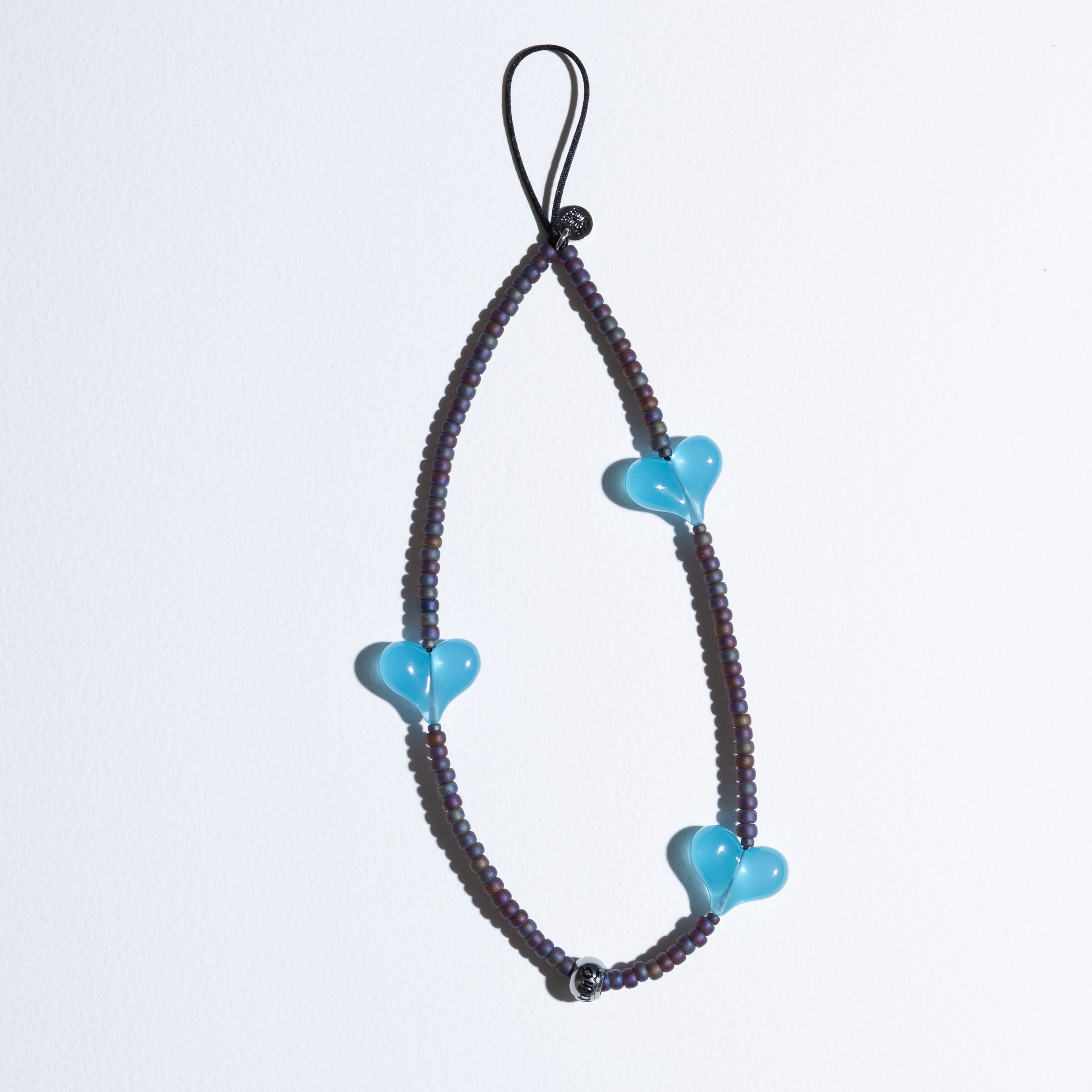 Cool shift energy. Three of our exclusive String Ting signature heart beads in translucent atomizer aqua sit perfectly spaced along a stream of matte transparent brown AB Japanese Miyuki® beads — the triple heart design that started it all.
