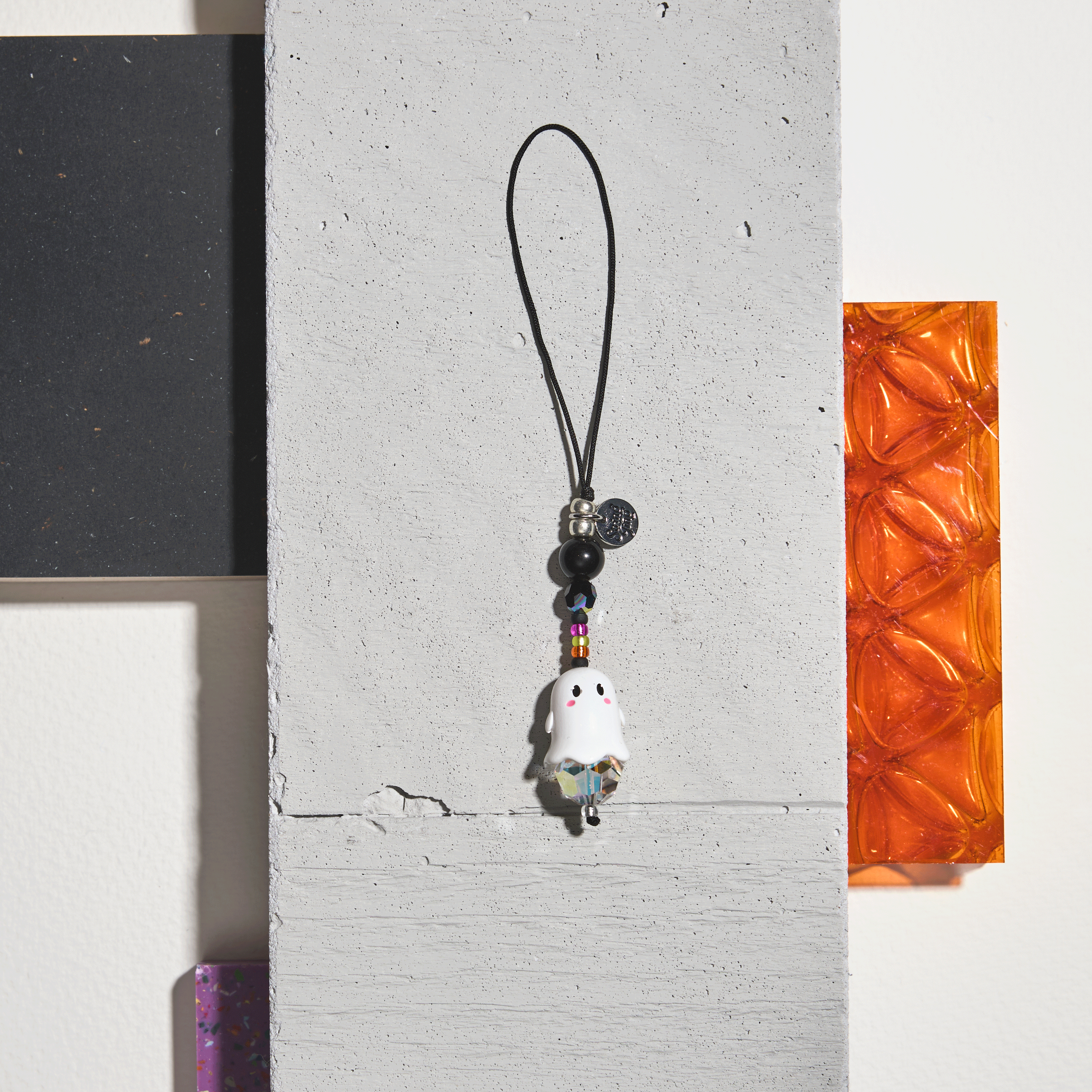 This charming little companion features one smooth Grade A obsidian bead for protection, a jet AB Crystal by Swarovski® that catches darkness beautifully, one adorable ghost, a large AB Crystal by Swarovski® for extra sparkle, and a carefully arranged cluster of teeny Japanese Miyuki® beads in a spooky colour story. Each element is hand-selected to create the perfect balance of cute and mysterious.